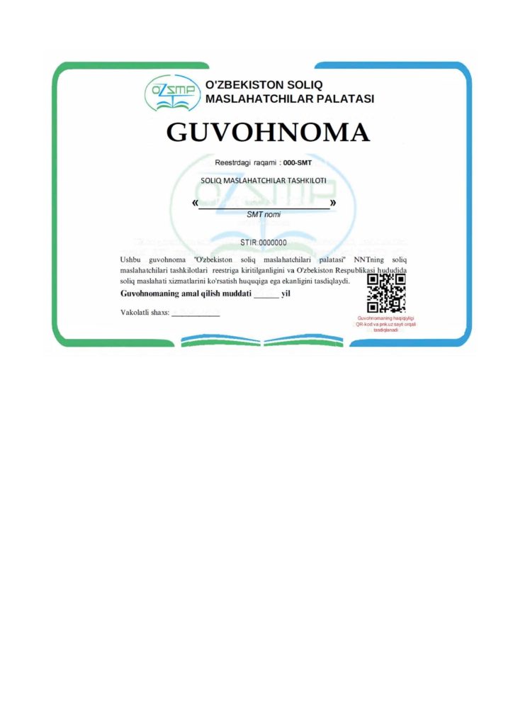 • ЎЗБЕКИСТОН СОЛИҚ МАСЛАҲАТЧИЛАР ПАЛАТАСИ
