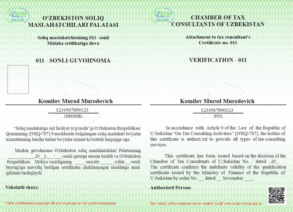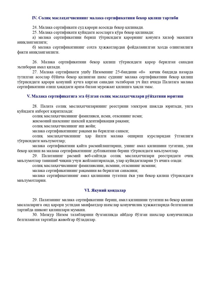 ЎЗБЕКИСТОН СОЛИҚ МАСЛАҲАТЧИЛАР ПАЛАТАСИ